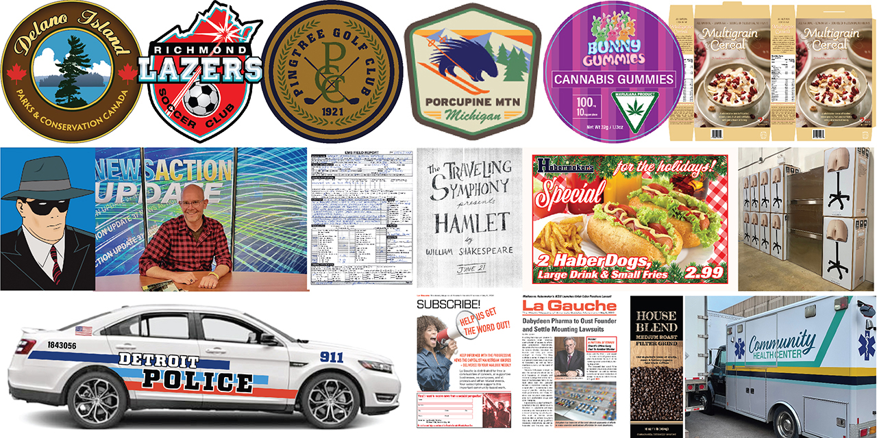 Since 1998, I have been designing graphics, props and scenic elements for film and television. Below is a sampling of work.
